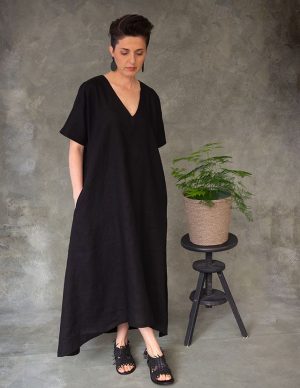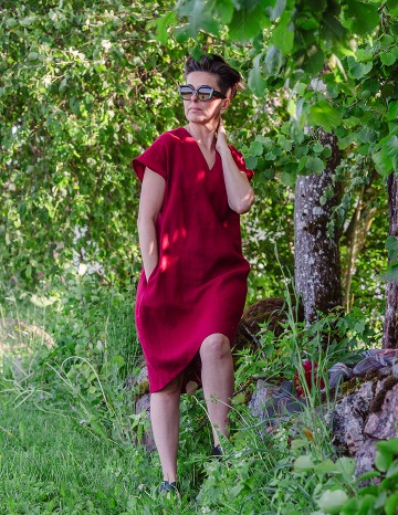 Ella is a comfortable and figure-friendly summer dress/tunic. V-neck front and back, short sleeves, playful cocoon-shape and hidden side pockets will quickly make Ella your new summer favorite.