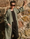Õhemast linast, minimalistlik-jaapanipöärane, moderne, taskutega lihtsa lõikega suvemantel. Suurepärane täiendus kihiliseks riietuseks suveõhtusse. Väga lihtne kombineerida kõigi teiste sama kollektsiooni toodetega.